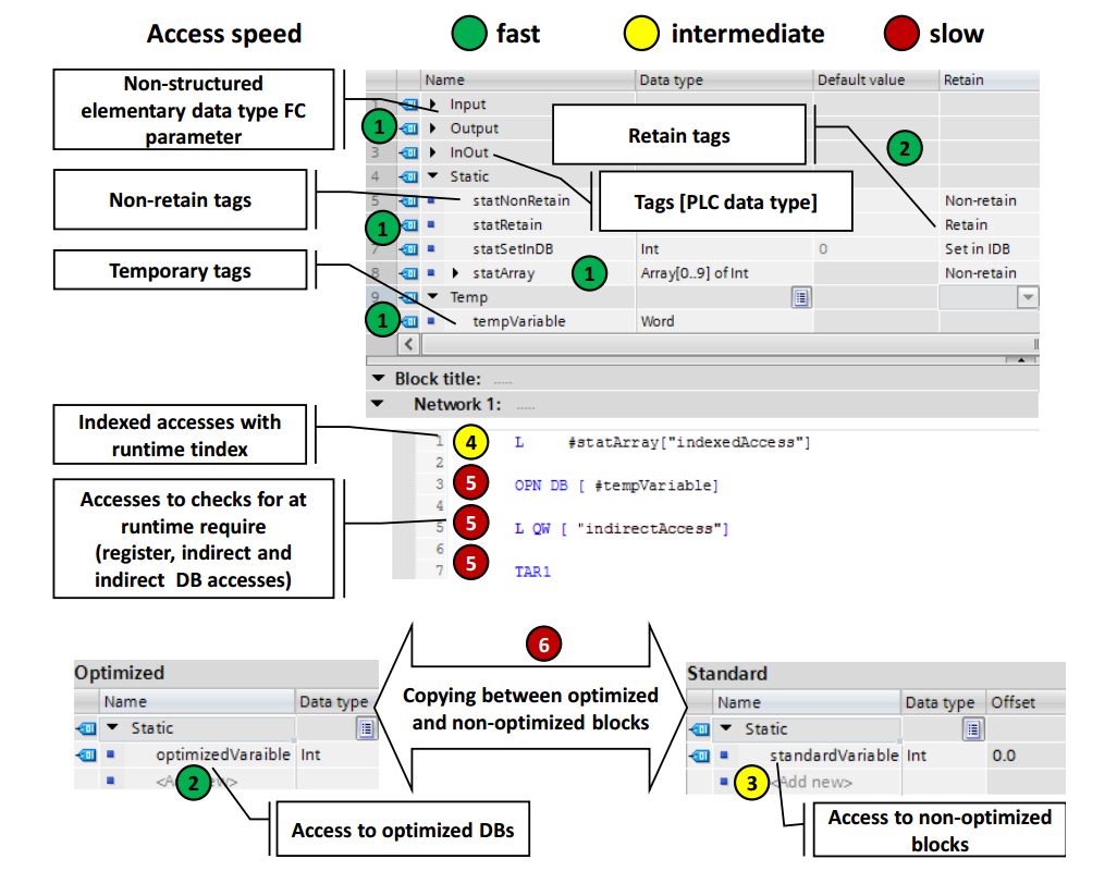 - ==由于处理器优化的存储,访问速度更快(S7-1500的处理器读取或写入这些标签只使用一句机器指令)==